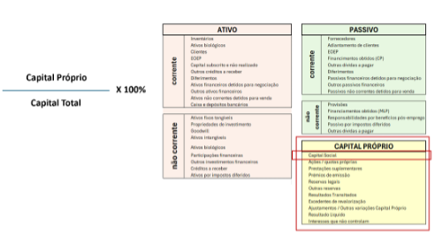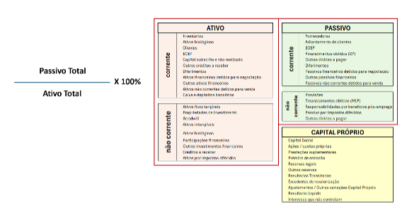Um resultado elevado pode sugerir maior risco financeiro, enquanto uma percentagem mais baixa indica menor dependência de capital externo.​